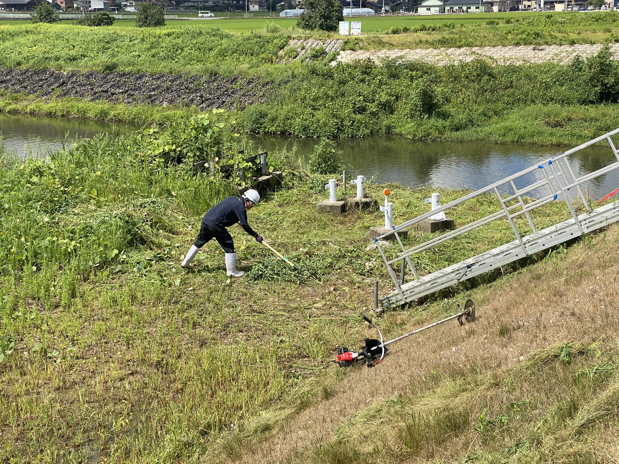 現場にての草刈り