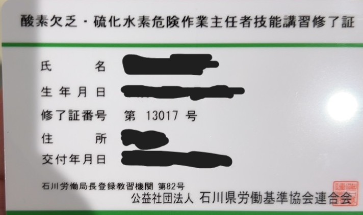 20日~22日にかけて、酸素欠乏・硫化水素危険作業主任者の資格取得のために、