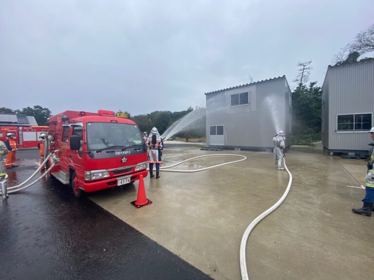 最近の訓練は、分団ごとに行うのではなく、複数の分団が協力して消火活動を行う形が主流だ。