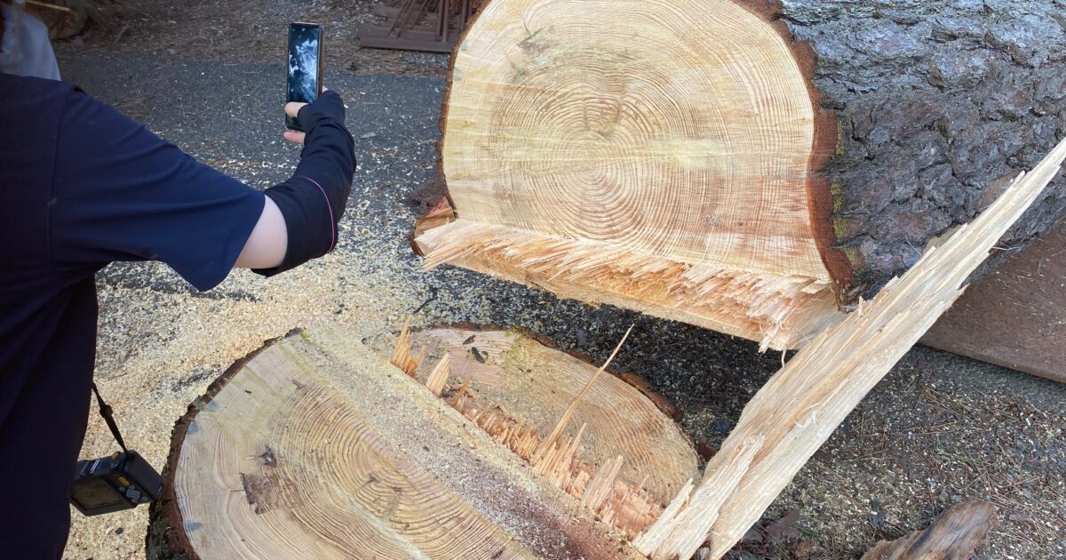 そしてチェーンソーを入れると、大木はまるで計算されたかのように正確な方向へ倒れていきました。