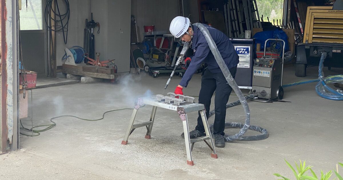 私がドライアイス洗浄の現場に初めて行ったときです。2年前、まだこの技術について何も知らなかった私が、今では少しずつ現場で持って作業できるようになりました。
