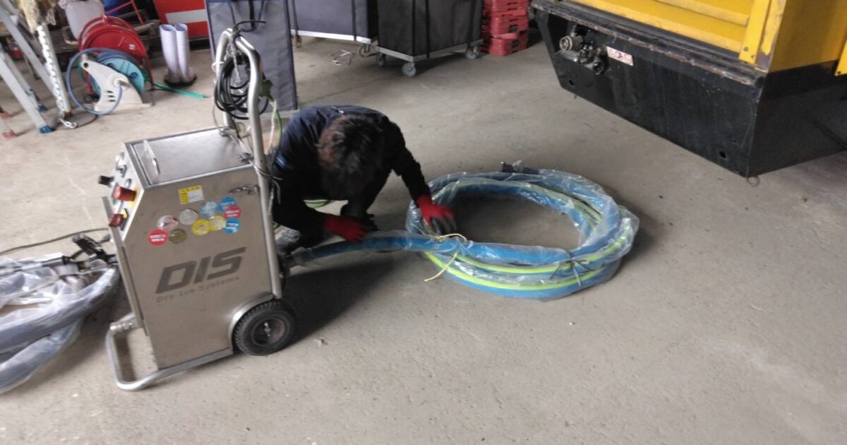 ドライアイス洗浄で使用するホースの巻き方や洗浄機の電源を入れるときの手順が時々分からないことがあったりするのでもっと練習を