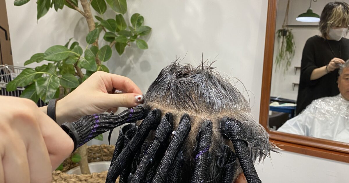 新しいパーマ技術とやらは、ロットをまくのではなく特殊なものを棒で伸ばしそれを引っ張りぬくとねじねじとスパイラルになる特殊なものを使っていました!