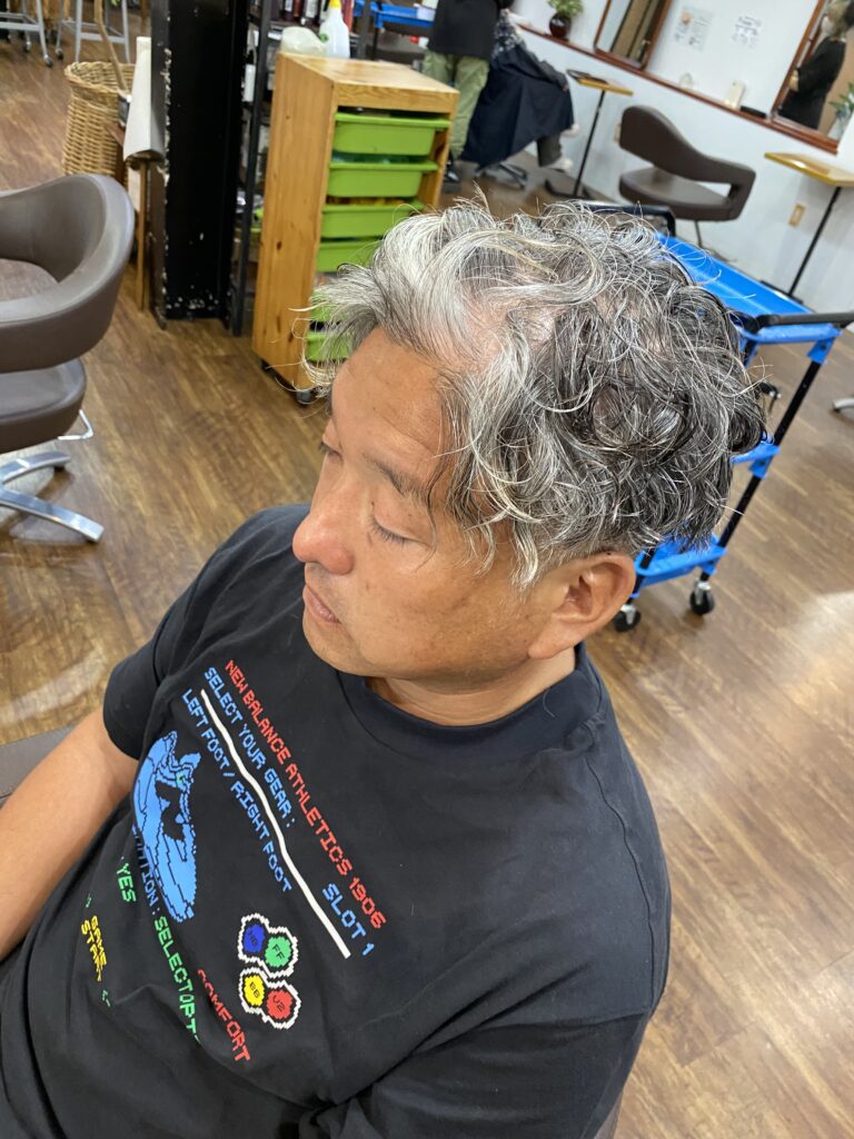 ローションが塗布され、少し時間を置いたあと、髪を洗いにそのときは何も見えないのでどんな感じになっているのだろうと思いながらシャンプーされていました(笑)。