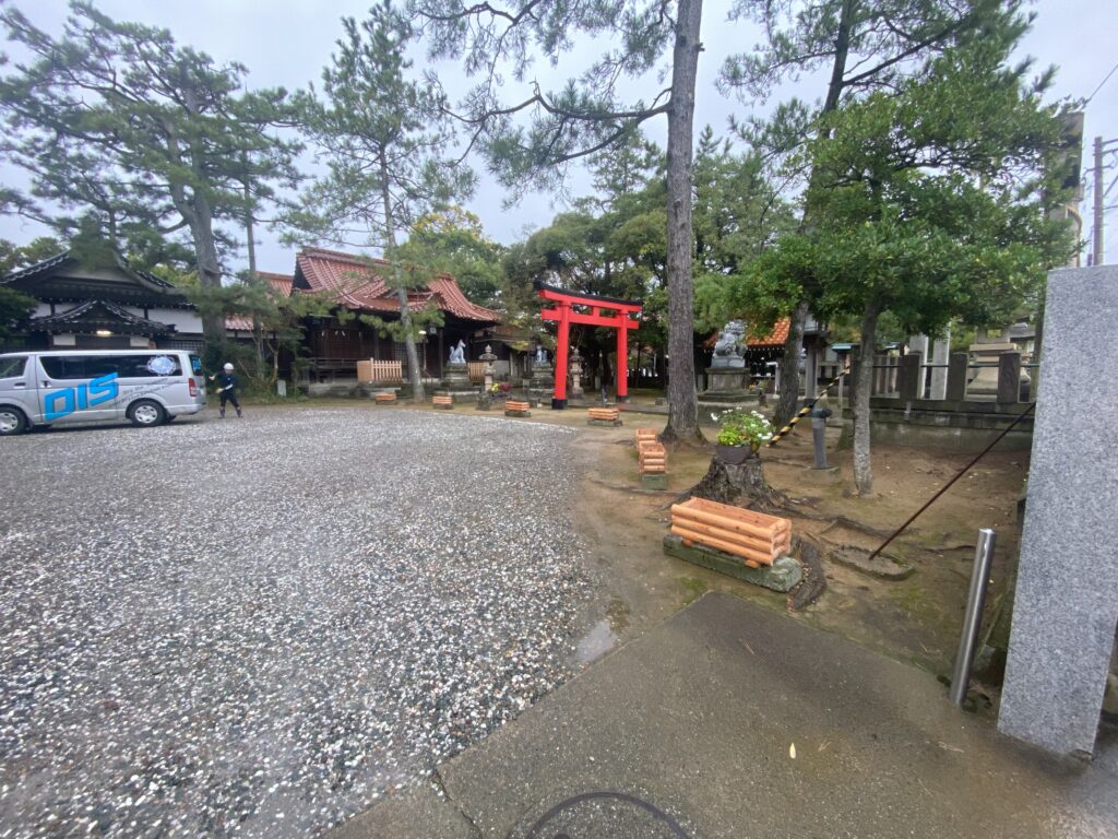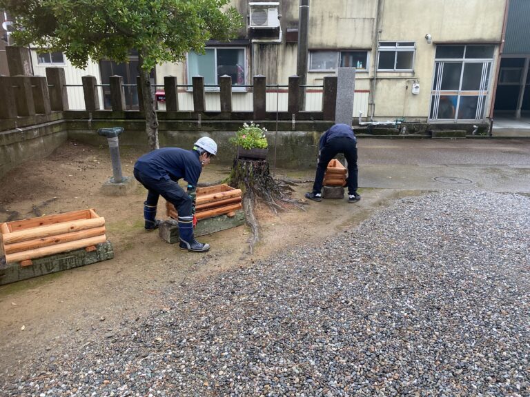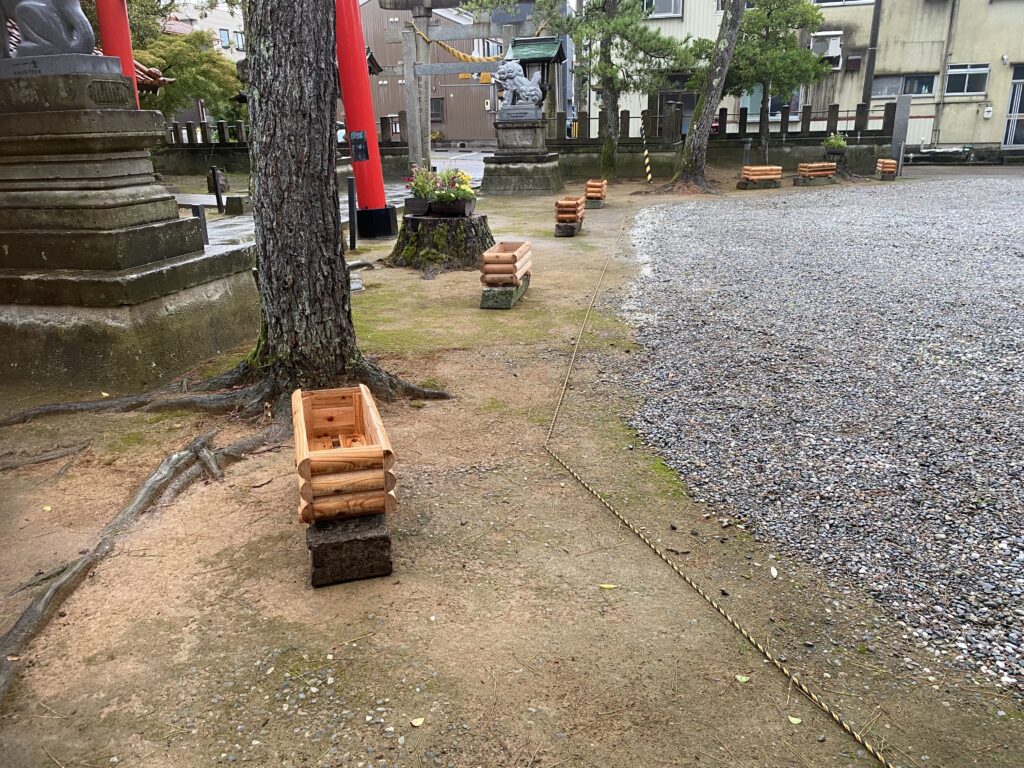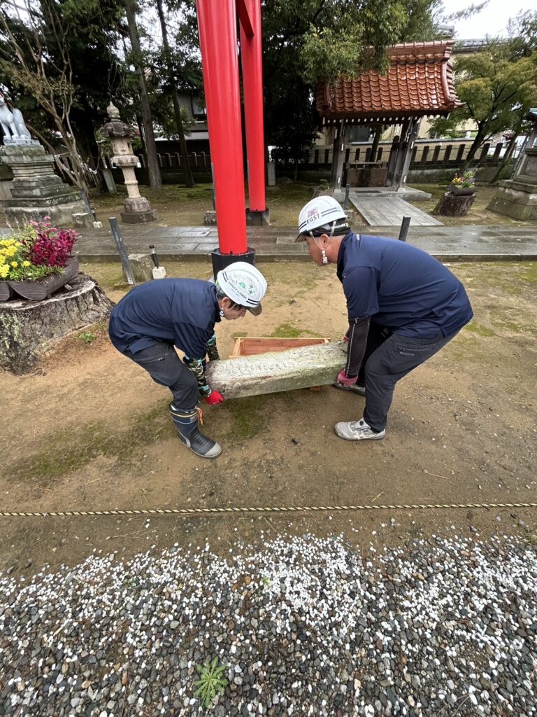 今回のプランター設置作業は、神主さんが決めた配置に従い、指定された場所に石を並べ、その上にプランターを設置するだけという比較的シンプルな作業でした。プランターの位置を微調整し、最終的にはきれいな通りができるように整えて完了しました。終わってみると短時間でスムーズに作業が進んで、とても充実感がありました。