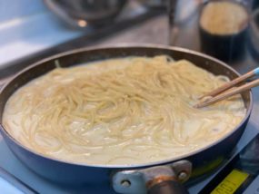 子供たちは親父飯を美味しいといってバクついてくれます、今回はクリームパスタを作りました!
