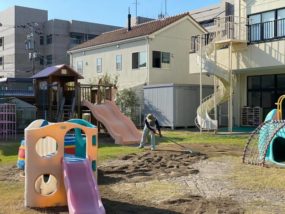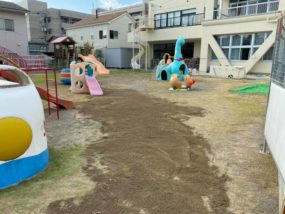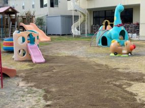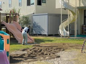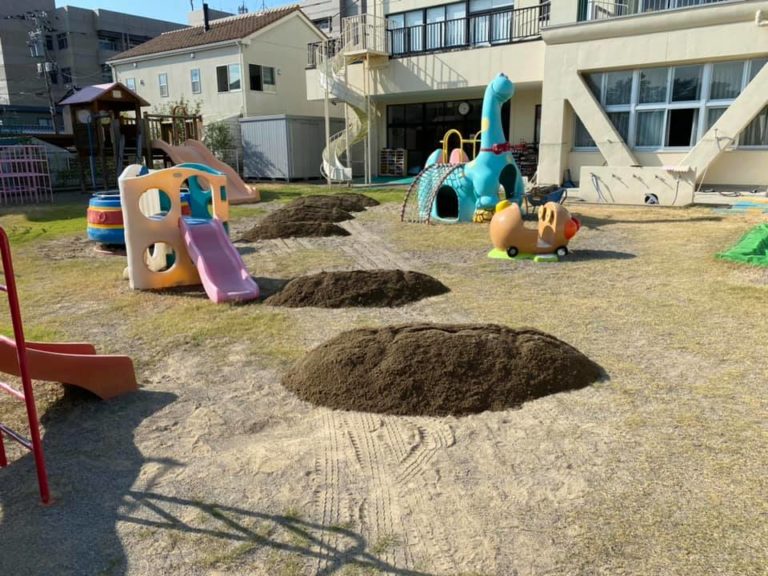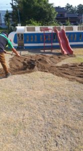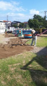 昨日も暑かったですね、暑い最中に保育園の園庭の砂入れをしてきました!