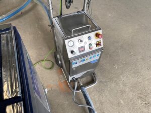 洗浄機、コンプレッサー、ホースとガン。ドライアイスペレット。